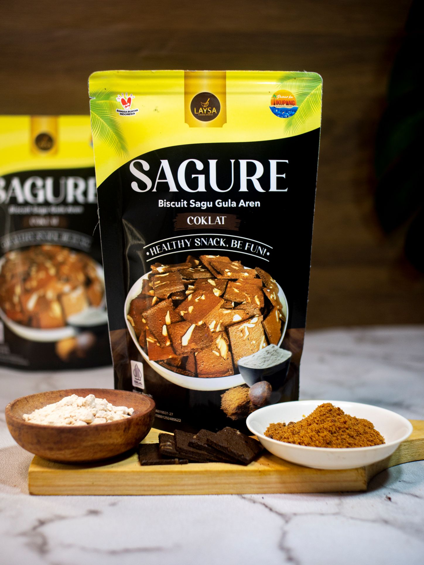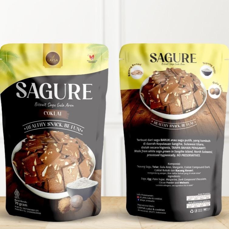 Sagure is a sago biscuit with brown sugar made from white sago grown in Sangihe Island, North Sulawesi. Processed hygienically, NO PRESERVATIVES.