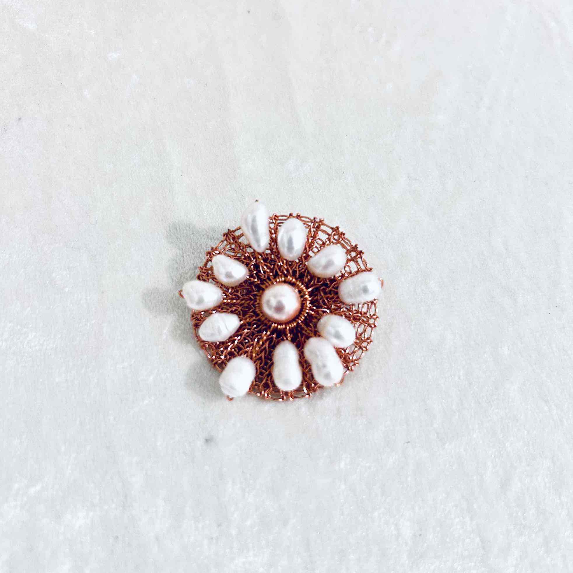 Resembling a blooming dandelion, the Dandelion Brooch is crafted with copper wire and freshwater pearls. A timeless piece that brings elegant ethnic charm to any look.