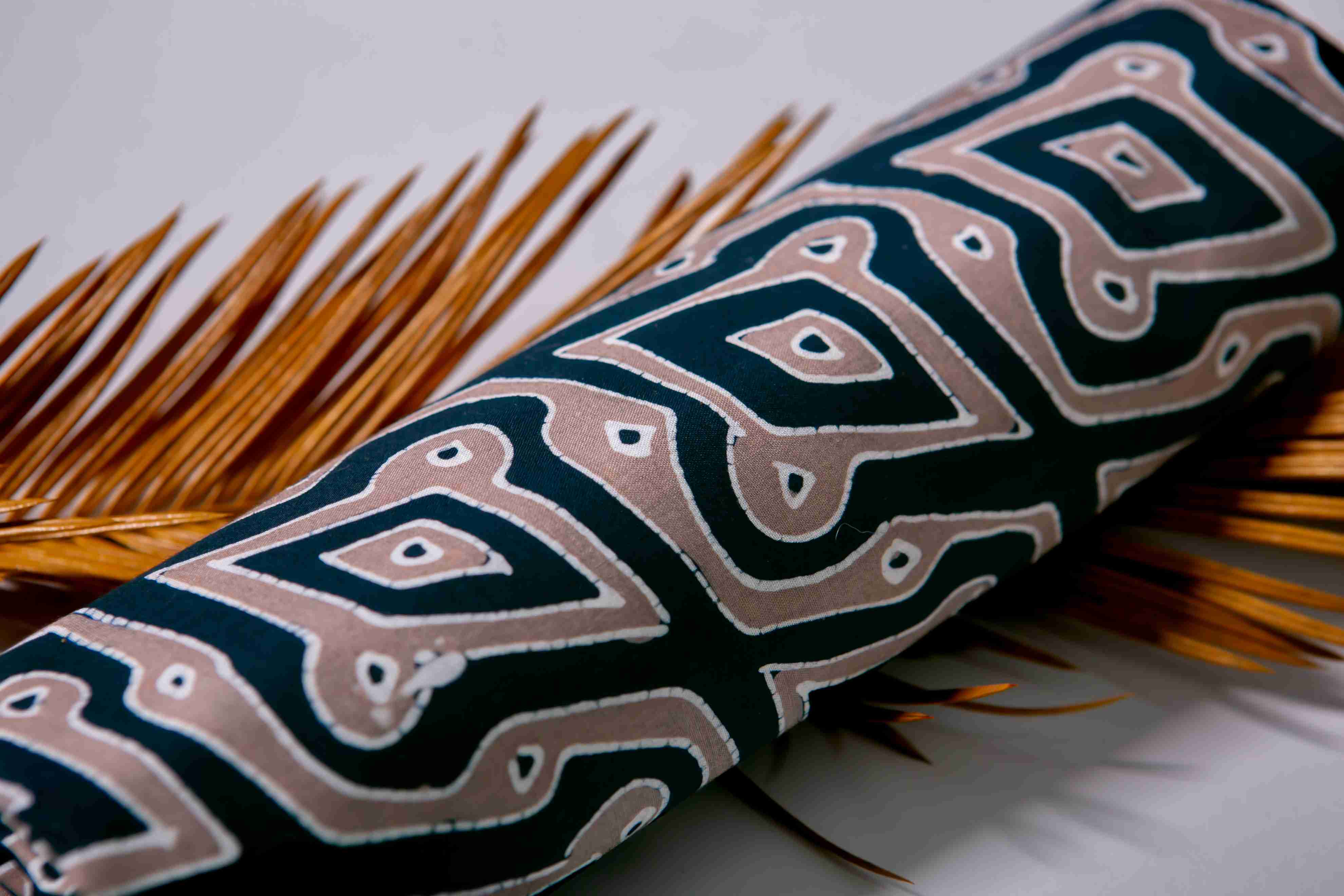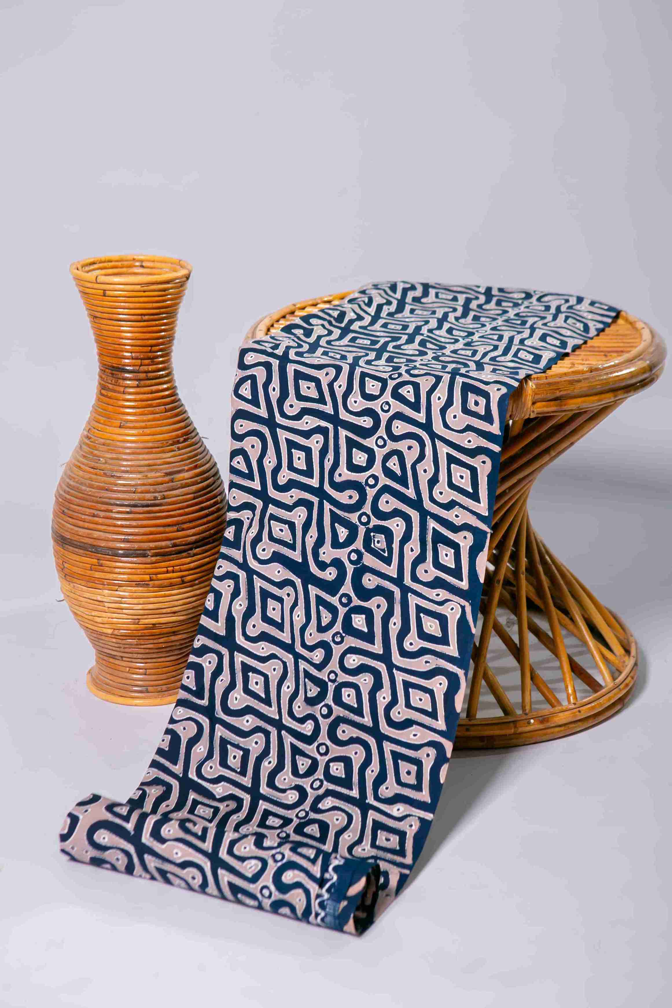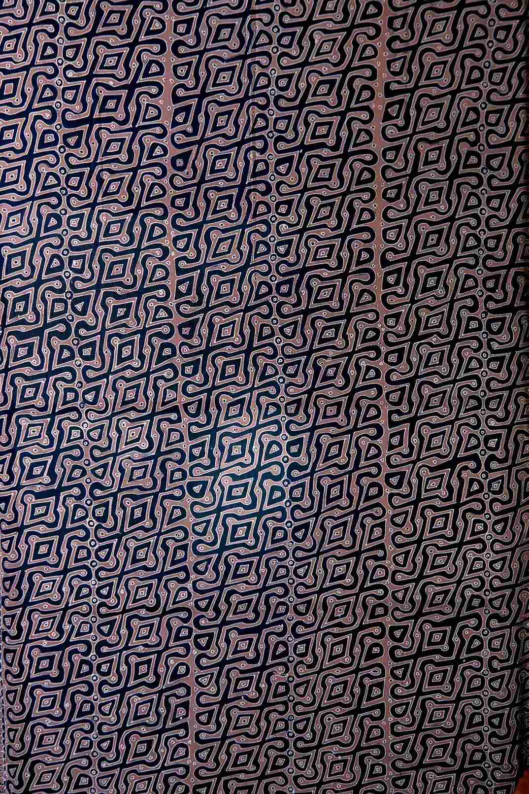 Pattern Meaning: Motif ini melambangkan kedalaman pengetahuan, ketenangan batin, dan keterikatan spiritual masyarakat Dayak dengan alam dan leluhur. Terinspirasi dari bentuk anyaman tikar dan anjat (tas tradisional dari rotan) motif ini merepresentasikan keselarasan hidup, ketelitian dalam berkarya, serta nilai-nilai kebersamaan dalam komunitas. Warna biru tua memberi nuansa kedalaman, refleksi diri, dan kekuatan dalam menghadapi kehidupan, menjadikan motif ini sebagai simbol budaya yang memadukan fungsi, keindahan, dan makna filosofis dalam satu kesatuan warisan adat.