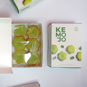 Kemojo is a typical Riau Malay food, Kemojo is often served at celebrations, iftar, or big day celebrations such as Eid, but now it can be found every day at Makacha Bakery. The fragrant pandan flavor gives Kemojo a green color, this cake has a sweet and savory taste from coconut milk, the texture is dense but soft which can be liked by various groups. Makacha's innovation is to make kemojo easy to consume, by making it bite-sized. 1 Box contains 6 pcs Kemojo Mini.