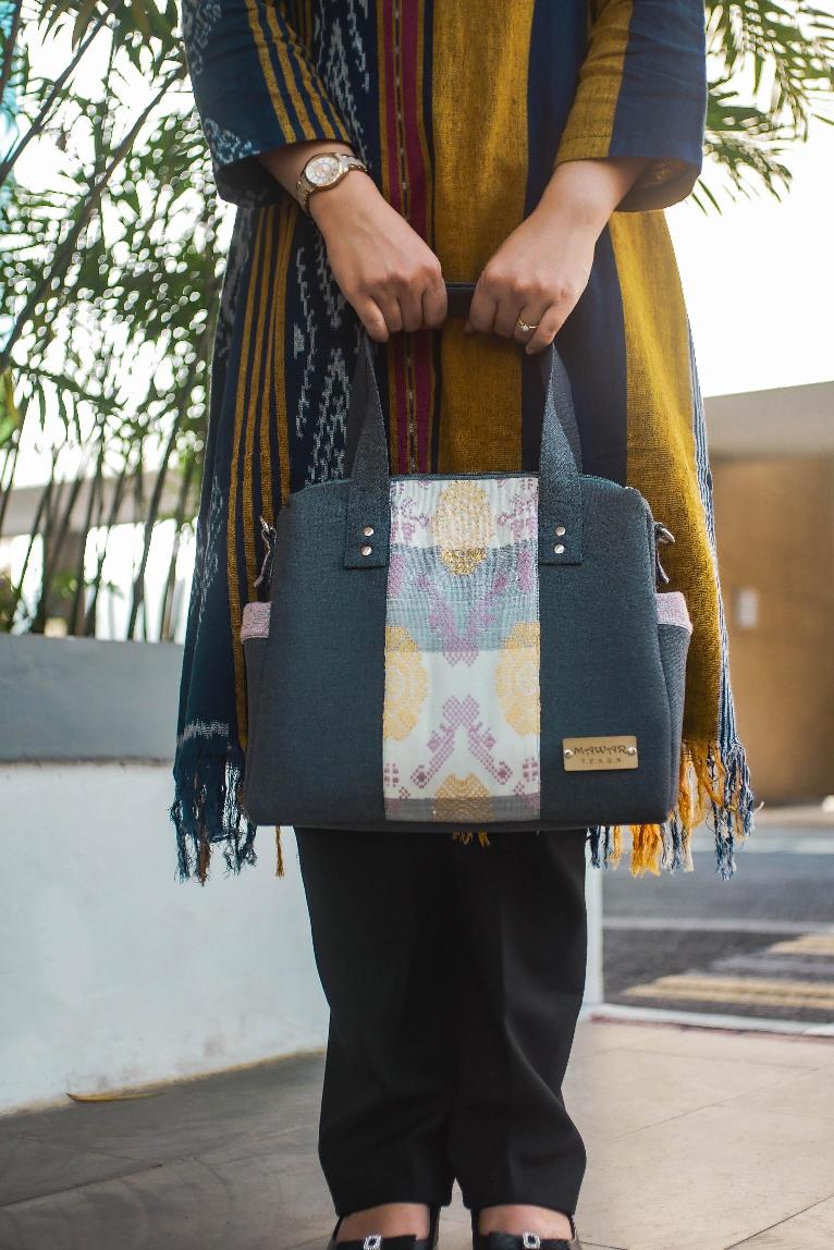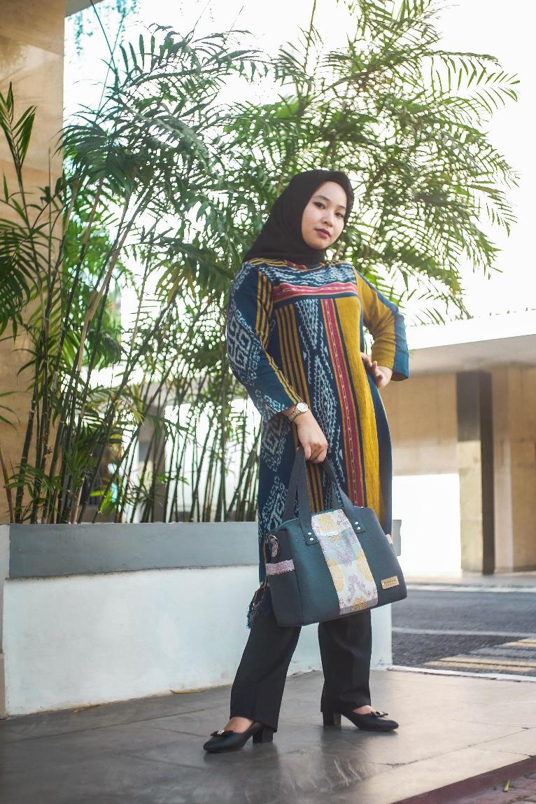 Produk ini dihasilkan menggunakan motif kain tenun matahari, dari sisa kain tenun yang salah jahit. Tahan hujan, tidak tembus air