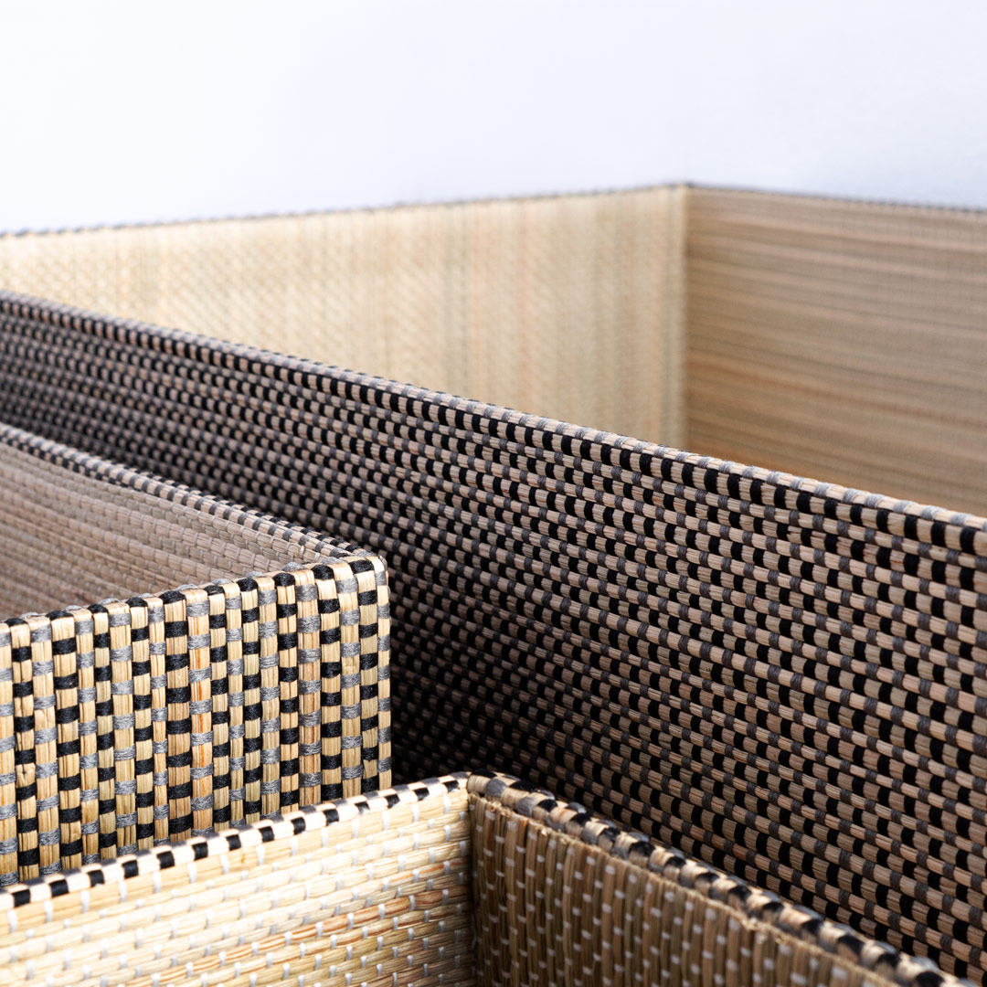 Recta Basket with a round base that brings a fresh touch to functional design. Created to meet storage needs while also serving as a decorative piece, this basket combines practicality with natural aesthetics. With its sturdy structure and unique silhouette, the Recta basket is perfect for organizing spaces with a modern-ethnic style, and is ideal for use in homes, cafes, or offices that value a warm and organized look.