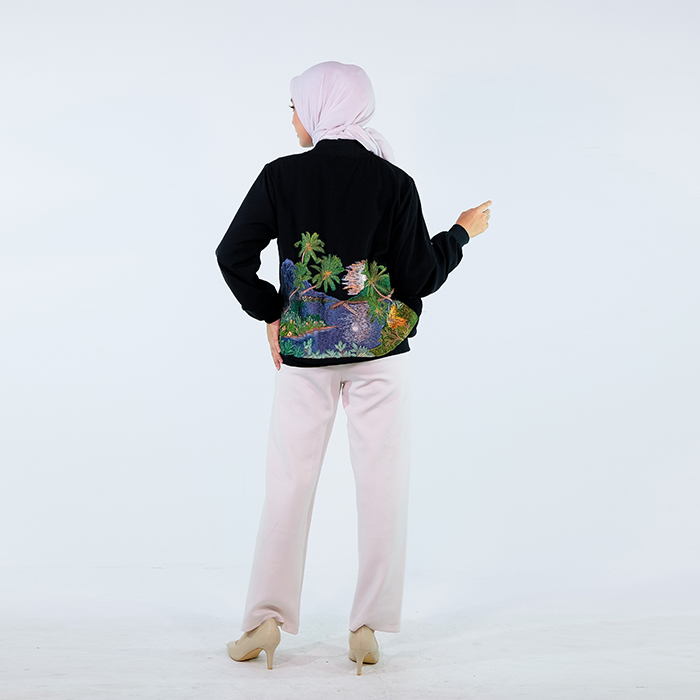 Mia Bordir was established in 2002 in Tasikmalaya, starting as a reseller before growing into its own producer of embroidered fashion. Today, it focuses on a variety of products: tunics, kebayas, mukenas, as well as blazers, bomber jackets, and long coats—all featuring fully handcrafted embroidery. Traditional embroidery techniques—done entirely by hand—bring a touch of artistry and elegance to every detail. Blending religious aesthetics with local Tasikmalaya culture, Mia Bordir uses carefully selected materials that are both comfortable and durable. Beyond its refined designs, the brand helps preserve traditional craftsmanship, empowers local artisans, and represents Tasikmalaya's quality in both national and international markets.