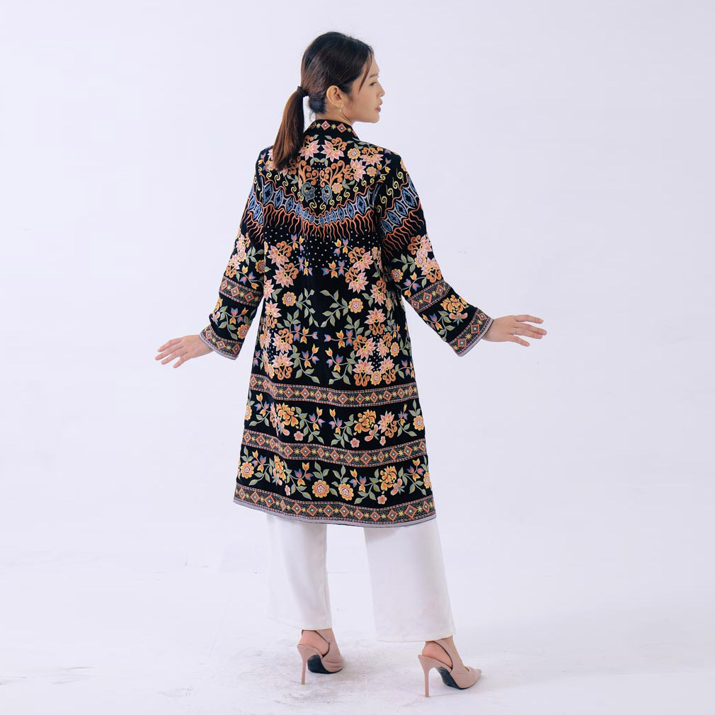 Mia Bordir was established in 2002 in Tasikmalaya, starting as a reseller before growing into its own producer of embroidered fashion. Today, it focuses on a variety of products: tunics, kebayas, mukenas, as well as blazers, bomber jackets, and long coats—all featuring fully handcrafted embroidery. Traditional embroidery techniques—done entirely by hand—bring a touch of artistry and elegance to every detail. Blending religious aesthetics with local Tasikmalaya culture, Mia Bordir uses carefully selected materials that are both comfortable and durable. Beyond its refined designs, the brand helps preserve traditional craftsmanship, empowers local artisans, and represents Tasikmalaya's quality in both national and international markets.