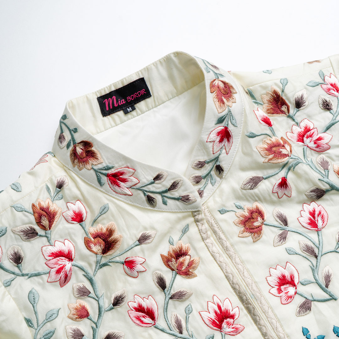 Mia Bordir was established in 2002 in Tasikmalaya, starting as a reseller before growing into its own producer of embroidered fashion. Today, it focuses on a variety of products: tunics, kebayas, mukenas, as well as blazers, bomber jackets, and long coats—all featuring fully handcrafted embroidery. Traditional embroidery techniques—done entirely by hand—bring a touch of artistry and elegance to every detail. Blending religious aesthetics with local Tasikmalaya culture, Mia Bordir uses carefully selected materials that are both comfortable and durable. Beyond its refined designs, the brand helps preserve traditional craftsmanship, empowers local artisans, and represents Tasikmalaya's quality in both national and international markets.