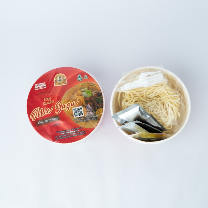 Material Content: mie sagu Maluku, ikan asap cakalang, bawang putih, bawang merah, sereh, lengkuas, gula, garam, kecap manis
