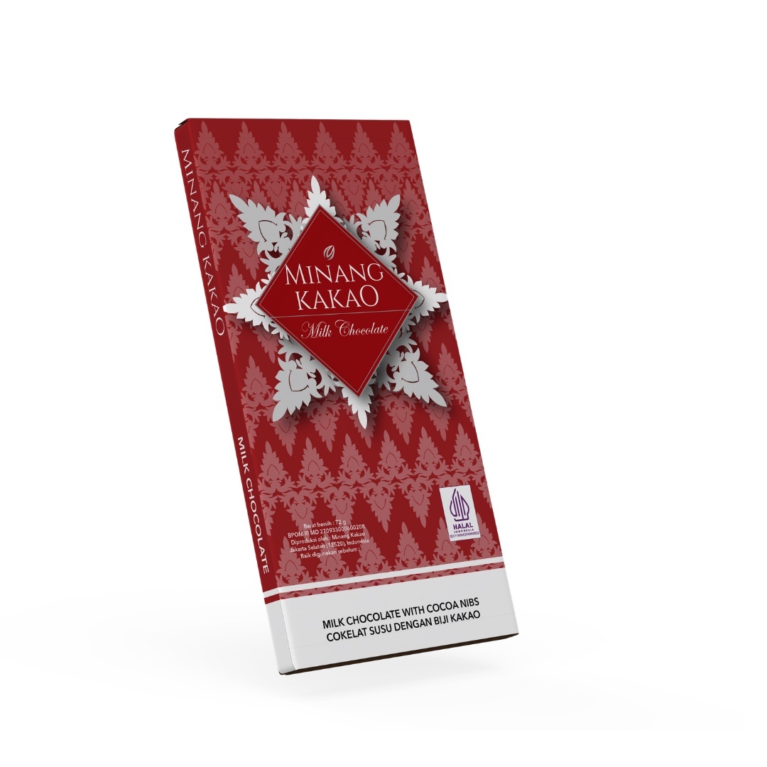 Milk Chocolate with crunchy Cocoa Nibs | 72gr | Minang Kakao Minang Kakao Premium Chocolate series is a premium chocolate bar (bean to bar) from Minang Kakao specially presented for milk lovers. Now appearing with a sprinkling of crunchy and sensational Cocoa Nibs. Made from all-natural and quality ingredients, without any chemical food additives. Highly recommended for chocolate food lovers and dairy product lovers. You will get an extraordinary milk chocolate sensation, because this product uses raw material from well fermented cocoa beans from the land of Indonesia, the Minang Kabau region. Made with chocolate making technology from Switzerland, Belgian taste and Indonesia origin (100%). It is the best food for your mood booster! Net weight: 72 grams Composition: Organic cocoa couverture, cocoa butter, cane sugar, milk powder, cocoa nibs Cocoa material: Well fermented cocoa beans, Trinitario clone Taste dominant: Chocolaty, Fruity, Flowery, Crunchy