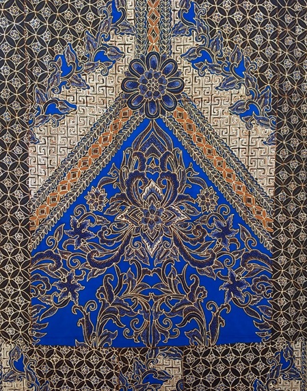 Pattern Meaning: menggambarkan motif kawung yang merupakan motif lama, dengan motif, kembangan teratai