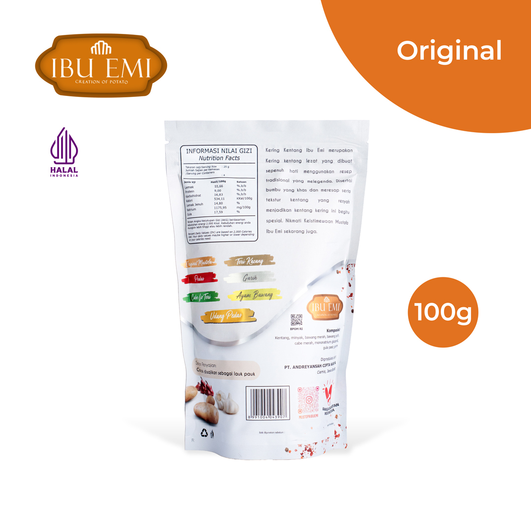 Mustofa Potato by Ibu Emi is a crispy snack made from selected potatoes, processed hygienically and seasoned with signature spices. Each flavor variant, delivers a delightful crunch and rich, authentic taste. Perfect as a meal side dish or an everyday snack. Conveniently packaged for freshness, Mustofa Ibu Emi is a must-have for home treats or tasty souvenirs.