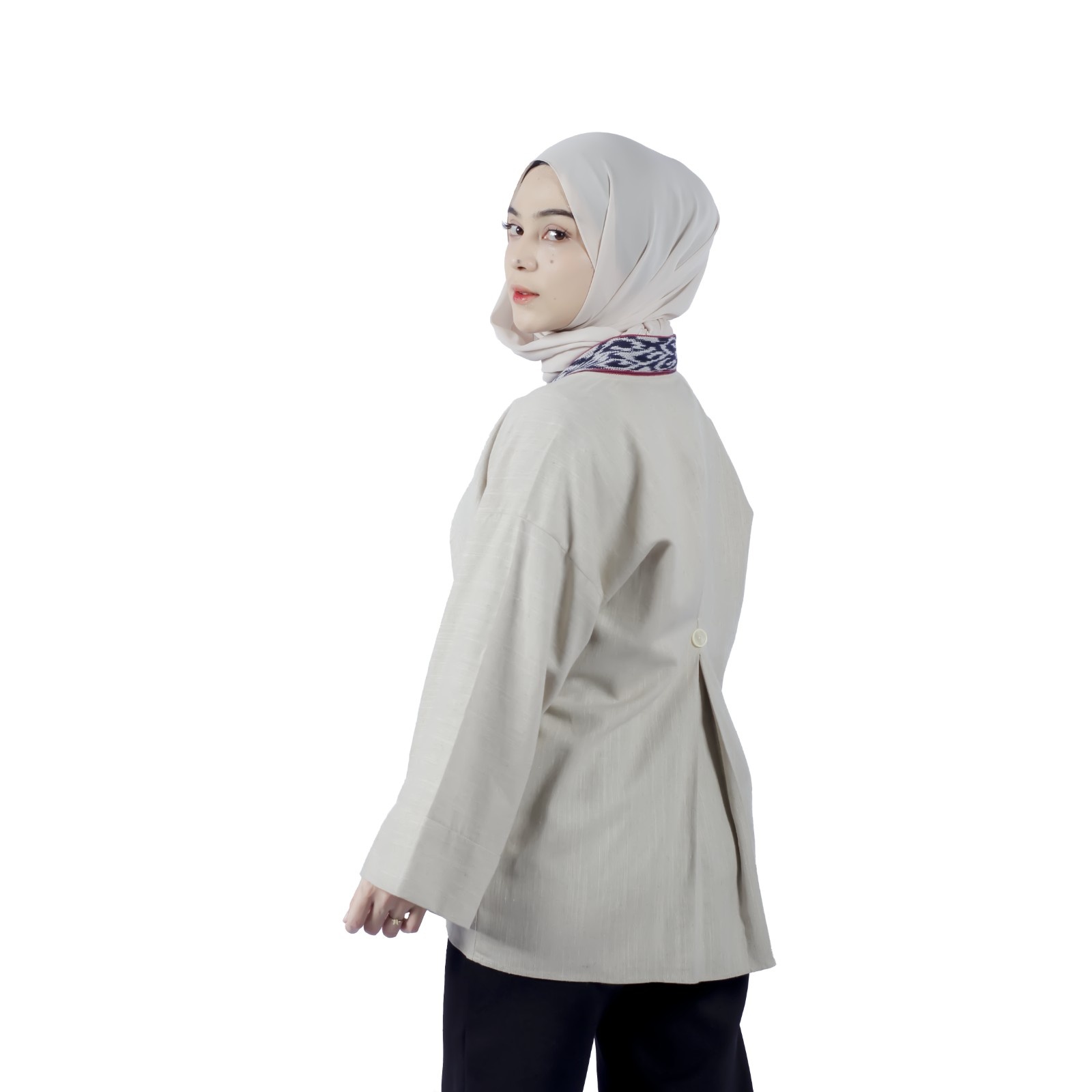 Neknic is a modern ready-to-wear women's fashion brand offering a range of apparel from outers and skirts to office attire. Its designs are inspired by Asian fashion trends, particularly from Japan and Korea, while also incorporating traditional elements from Sulawesi. The brand favors natural fabrics like linen, linen-look, cotton, and traditional Wastra fabric. This results in a casual, arty, off-beat style. The core color palette is neutral and cool, focusing on shades of brown, navy, gray, black, and cream.