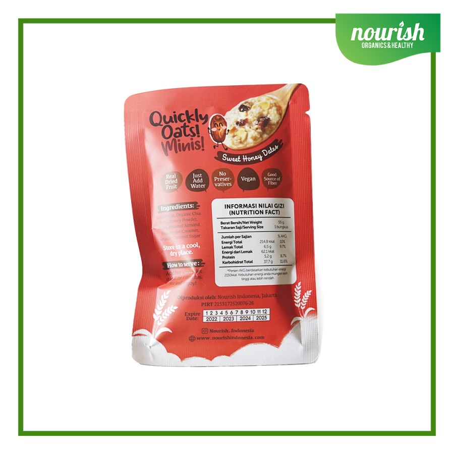 Quickly Oats! Minis! Instant Oatmeal Sweet Honey Dates Sachet 55gr