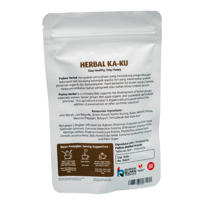 Dissolve one tablespoon of Padma Herbal KAKU in a glass of warm water (250ml), stir well, and drink regularly, especially when you feel joint pain, uric acid, or stiffness.