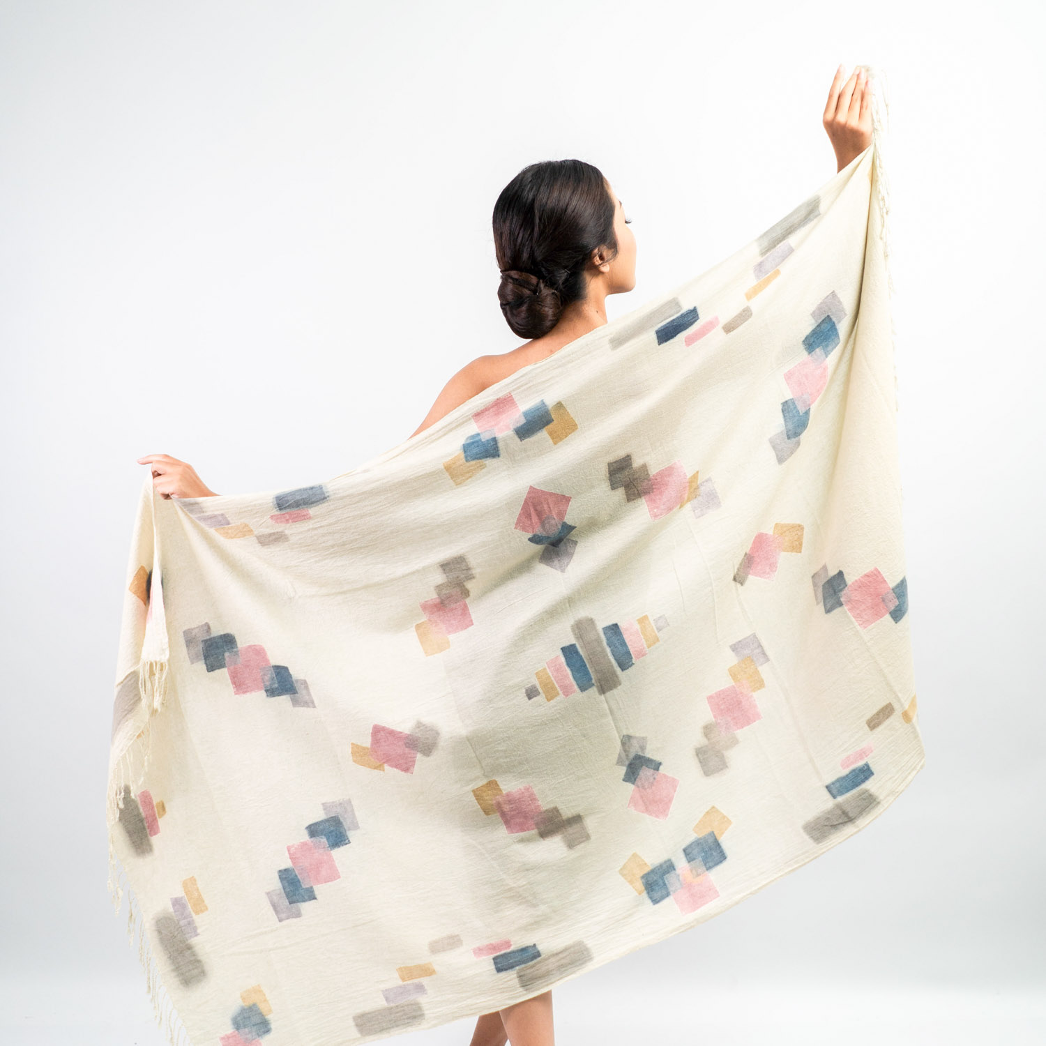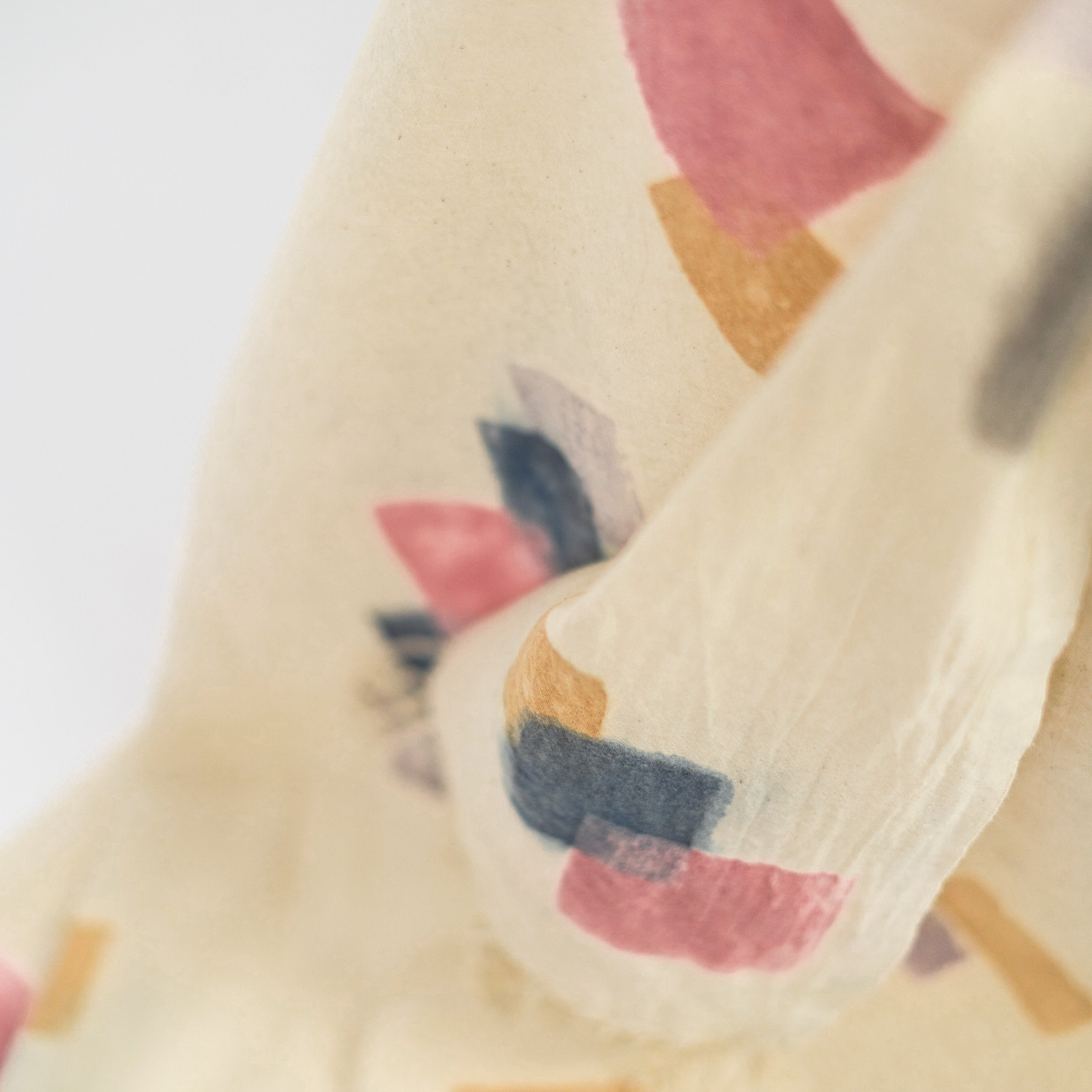 Pattern Meaning: Motif ini dibuat menggunakan teknik stamp dari spon sebagai pembentuk motifnya. Dibuat dengan mengkombinasikan semua warna yang dihasilkan di studio.
