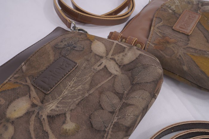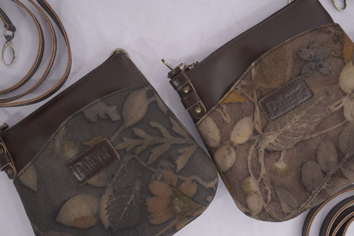 small bag with an elegant casual design made from ecoprint denim and cow leather