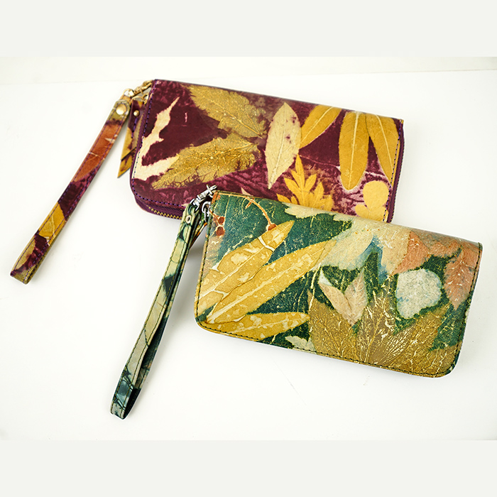 Pouch dengan bahan Ecoprint Kulit Domba dan inner Suede