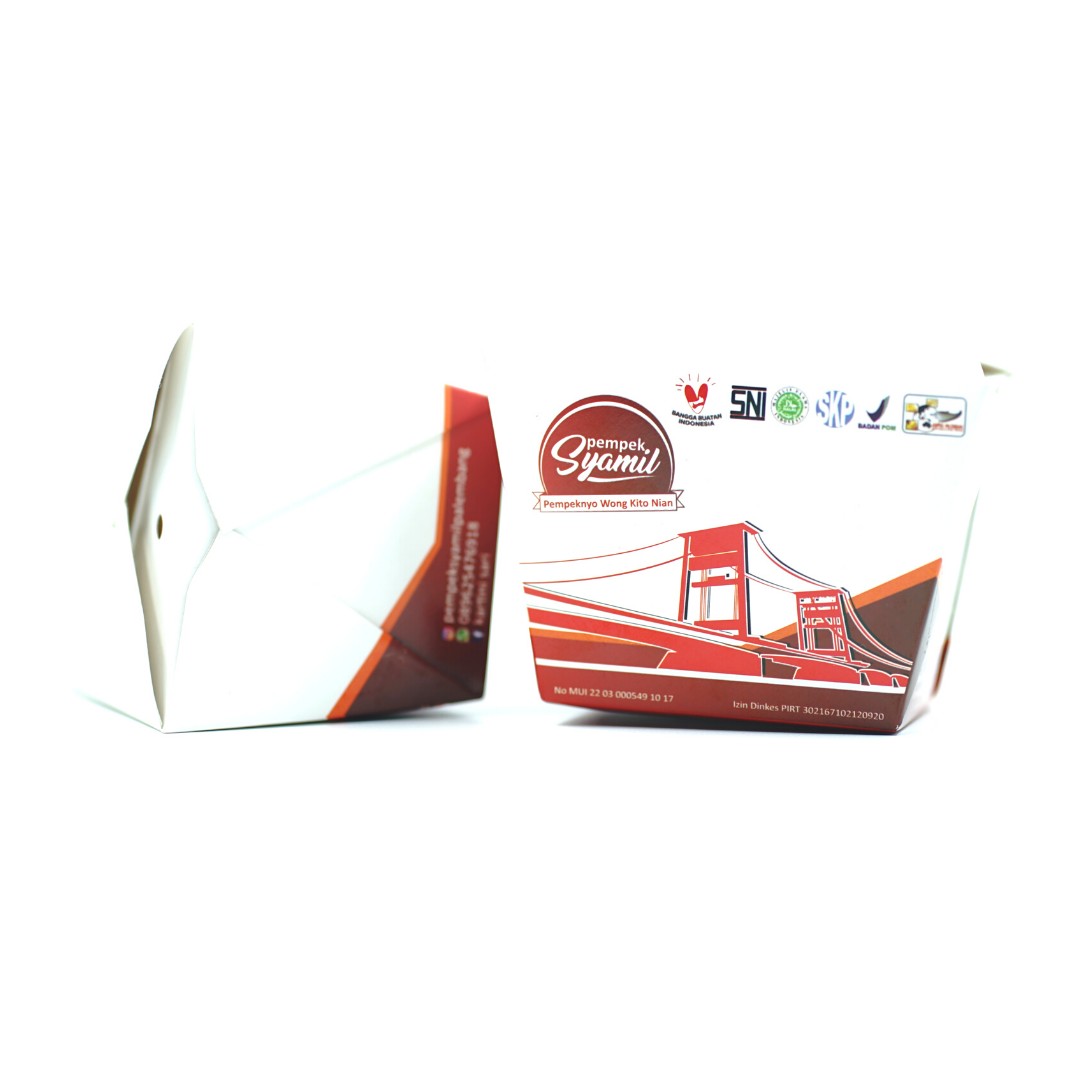 Pempek tenggiri isi 5 dengn kemasan premium udah sama cuko dan garfu jadi siap makan.