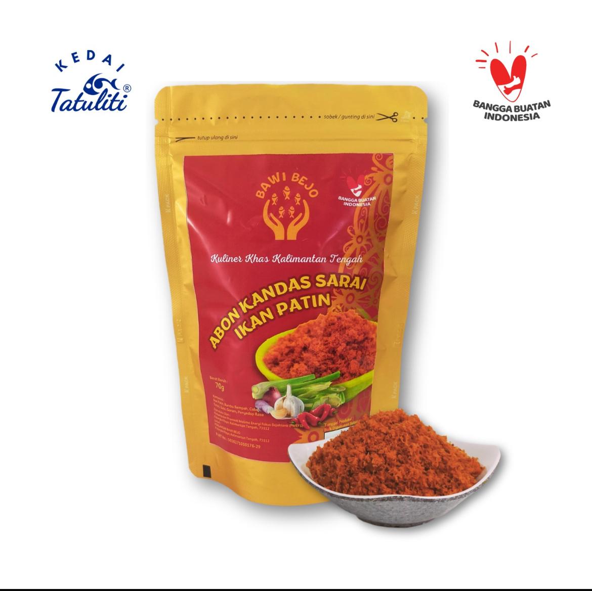 Abon ini terbuat dari daging ikan panggang yang dipadukan dengan Kandas Sarai atau Sambal Serai Khas Dayak, kemudian disangrai secara tradisional selama 6-8 jam. Aroma ikan panggang dan minyak atsiri dari Serai serta rasa pedas lombok lokal menjadi ciri khas citarasa abon ikan ini.