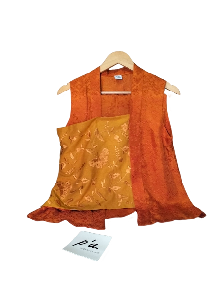 Bring tradition to life with a modern twist in this Sleeveless Kutubaru Blouse. Featuring delicate embroidery inspired by Hokokai Batik motifs, this piece blends ethnic charm with contemporary style. Perfect to pair with batik skirts or wide-leg pants for a chic, semi-formal or casual ethnic look.