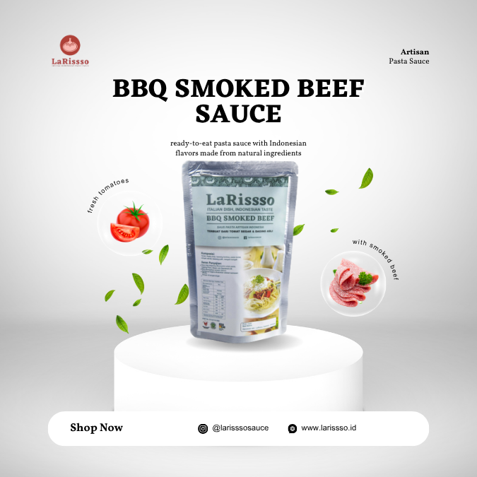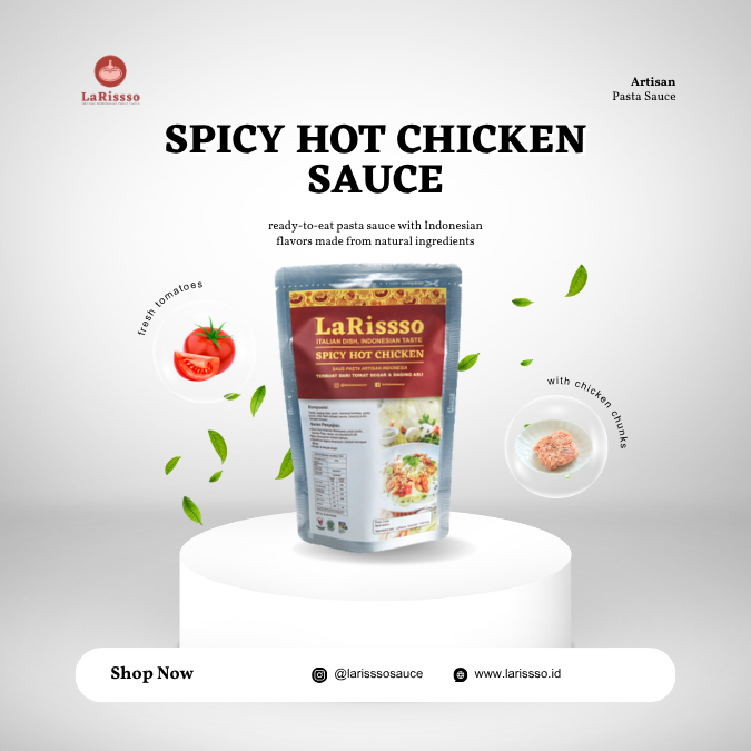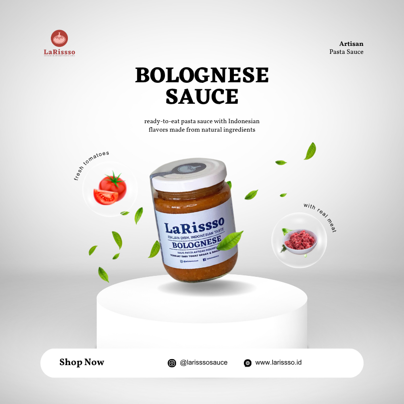 LaRissso is located on Elang Mas XII street no. 6 Gonilan, Kartasura, Sukoharjo, Central Java. LaRissso sauce is an Indonesia artisan pasta sauce ready to serve that made from fresh tomatoes and real meat from local farmers added with italian herbs which is combined with local herbs thus creating unique taste and it suits to Indonesian taste. LaRisso sauce cooked with a secret recipe bu the hands of the artisan, as appropriate with high standarts and quality. High quality results also healthy for life.