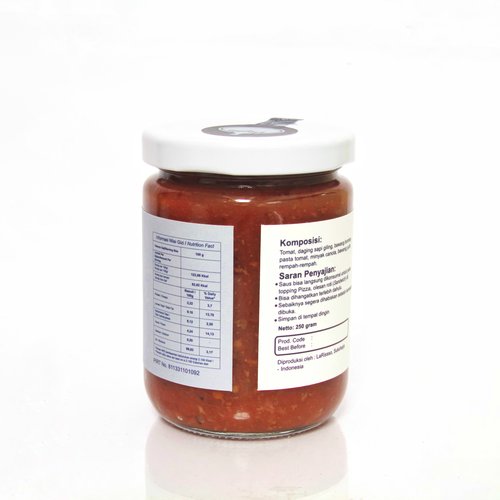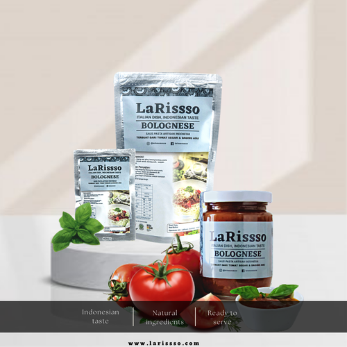 LaRissso Pasta Sauce Bolognese variant is a pasta sauce made from natural ingredients, namely fresh tomatoes harvested directly from the farmers, plus premium ground beef, which is cooked using canola oil and selected spices, as well as a blend of Italian herbs and local spices. thus creating a unique pasta sauce slightly sour, fresh, sweet and also savory. In addition to pasta, this sauce is also suitable for spreading bread, pizza, dipping french fries, nachos, and even as a seasoning for fried rice.