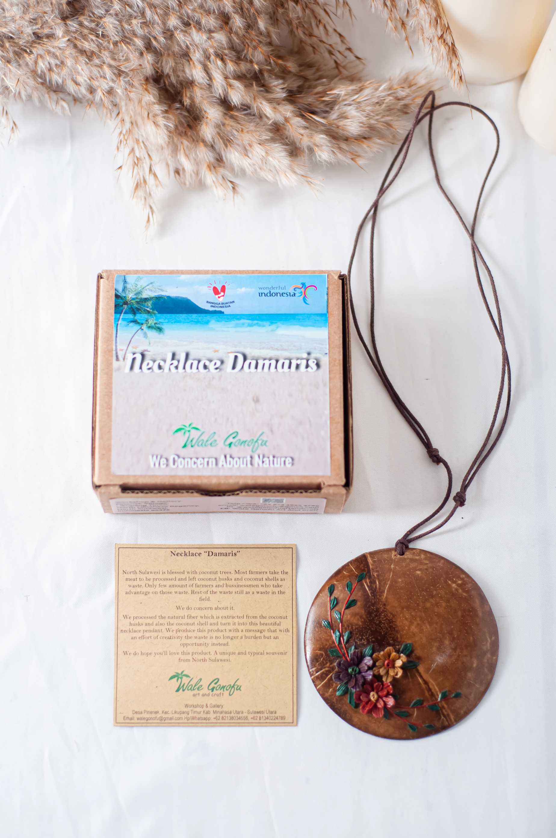 Wale Gonofu is a community-based craft initiative from Likupang, established in 2017, focused on transforming coconut waste into various art and craft products. Responding to the abundance of coconut waste in North Minahasa, we creatively repurpose materials such as husks, shells, and other coconut parts into home decor, brushes, accessories, bags, keychains, and other handmade products. Additionally, Wale Gonofu is committed to empowering local women by providing opportunities for involvement in this business, while contributing to the growth of the creative economy in North Sulawesi.