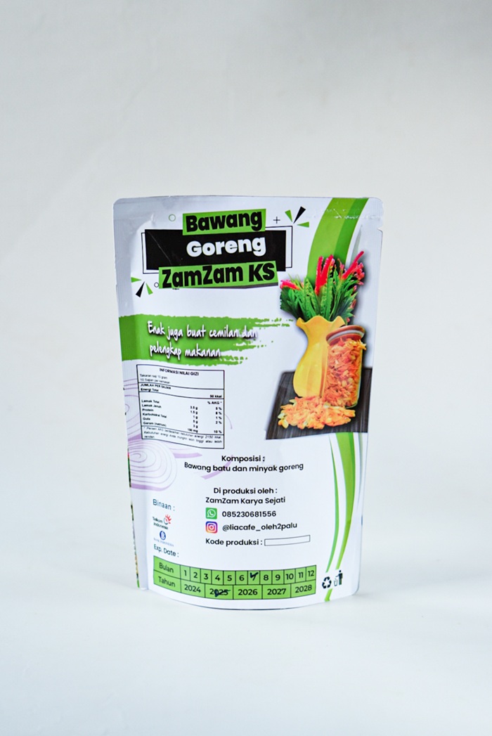 ZamZam KS Fried Onions are made from selected rock onions, perfectly fried in high-quality oil. With a crispy texture and distinctive savory flavor, this product is a perfect accompaniment to dishes like soto (Indonesian traditional soto), fried rice, chicken noodles, meatballs, and various soups. It can also be enjoyed as an addictive savory snack! Product Benefits: Made from 100% pure rock onions Fried in clean, hygienic oil No preservatives or artificial colors Halal Certified (ID27110002717050223) Quality guaranteed by Telkom Indonesia & Smesco Perfect as a souvenir from Palu! ℹ️ Ingredients: Red Onions Cooking Oil Packaging Information: Net Weight: 100 grams Ziplock pouch packaging: easy to store and maintains crispness Expiration Date: until 2028 Produced by: PT ZamZam Karya Sejati Suitable for: Topping on rice/noodles/soto (soto soup) Topping on side dishes and vegetables Hamper or souvenir idea Light snack for relaxing Contact & Social Media: WA: 0852-3068-1556 IG: @liacafe_oleh2palu