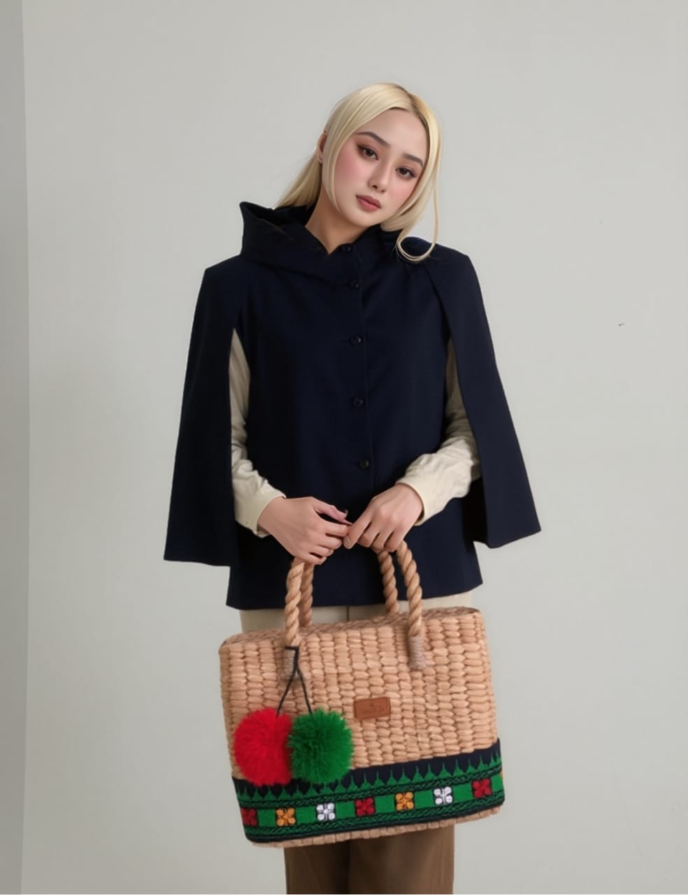 Ethnic handbag made from woven natural water hyacinth material, beautified with typical Acehnese handmade embroidery.