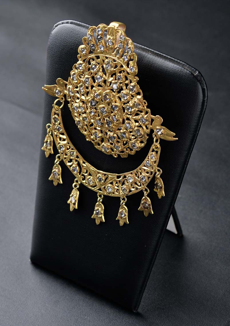 BROS BULAN IS A BROOCH MADE FROM GOLD COATED COPPER, A REPLICA OF A SPECIAL HERITAGE BROS IN PALEMBANG USING INTAN LEATHER JEWMS WHICH IS INSTALLATION PROCESS USING THE HANDMADE INSTALLATION METHOD