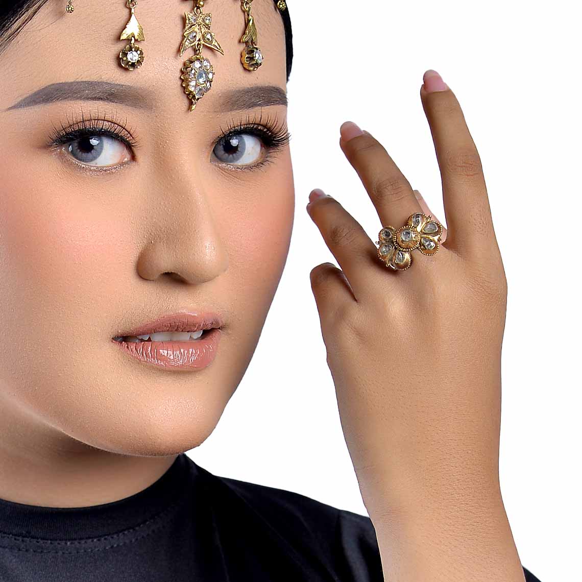 THE KINJENG DIAMOND RING IS AN ANTIQUE RING WHICH IS DESIGNED TO LIKE THE KINJENG SHAPE WHICH HAS DIAMOND GEMS