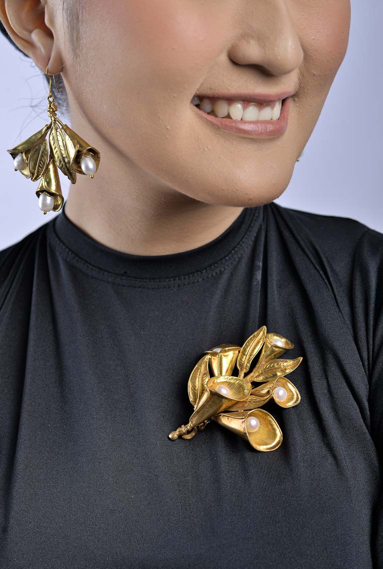 ANTING LILY HAVE THE SHAPE OF A LILIAL DRANGING DOWN, THE ADDITION OF A FRESHWATER PEARL