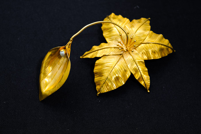 THIS CATLEYA ORCHID BROOCH HAS A SET OF EARRINGS MADE FROM DARK COPPER, GOLD PLATED BRASS, INSPIRED BY THE SHAPE OF ONE OF THE ORCHID FLOWERS, THE CATLEYA ORCHID FLOWER.