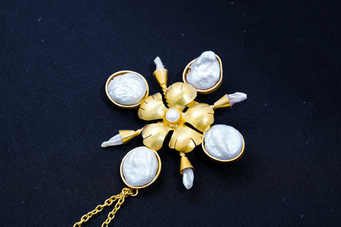 KESHI PEARL FRAME WITH GOLD PLATED BRASS COPPER IN SONGKET SHAPED