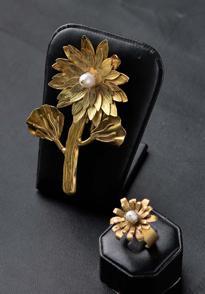 THE TERATE FLOWER BROS HAS THE SHAPE OF THE LOTUS FLOWER, THIS BROOCH IS VERY UNIQUE