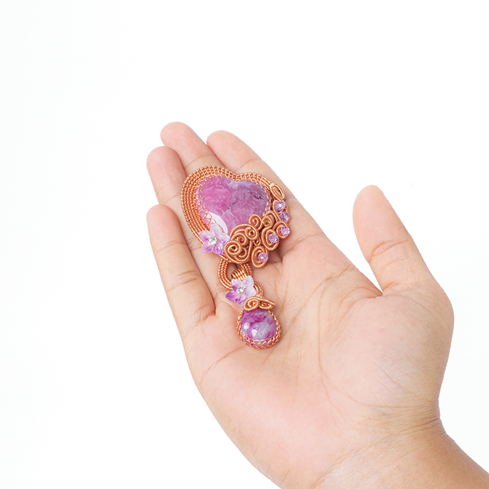 This product is made using cabochon stones with a flat surface in the shape of love, made with full accents that resemble flowers.