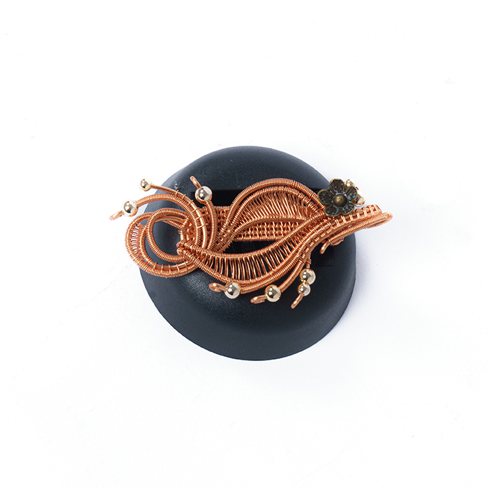 This product uses 0.8 size rose gold enameled copper wire which is woven in such a way, adding copper flowers and pepper beads.