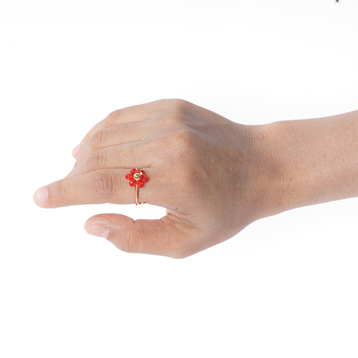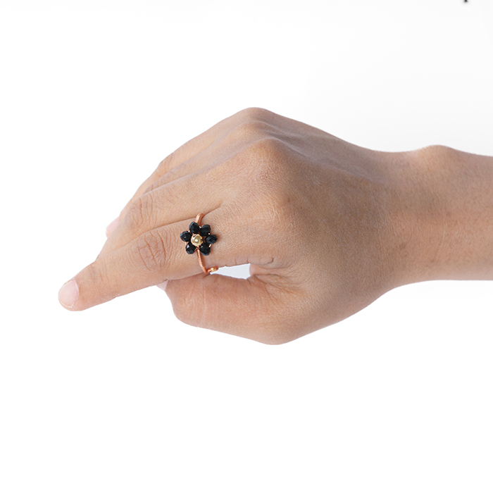 This ring is assembled using 0.4 mm donut crystals tied using 1 mm rose gold copper wire. This ring can be used for all ages because this ring is adjustable and can be made larger or smaller according to the circumference of the user's finger.
