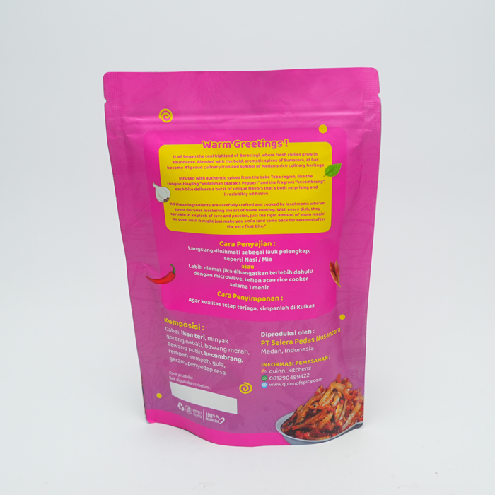 Medan, the culinary capital of the archipelago, is renowned for its rich flavors, a fusion of Malay, Chinese, Batak, and Indian influences. From the volcanic soil of the Berastagi highlands, we carefully select the finest fresh red chilies infused with spices around Lake Toba for a distinctive and authentic taste. Tentang Kita Quinn of Spicy is more than just a chili sauce—it’s the pride of Medan. With its irresistible spiciness, our sambal has won the trust of millions of customers and become a best-seller on Marketplace. Now, the flavors of Medan can be enjoyed anytime, anywhere.