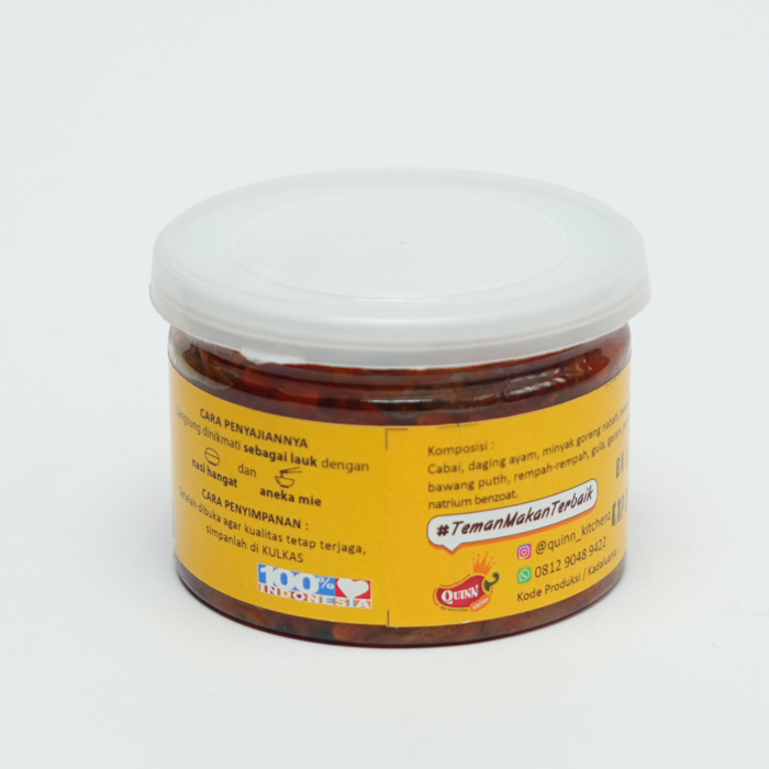 Material Content: Cabai, daging ayam, minyak goreng nabati, bawang merah, bawang putih, rempah, garam, gula, penyedap rasa, natrium benzoat
