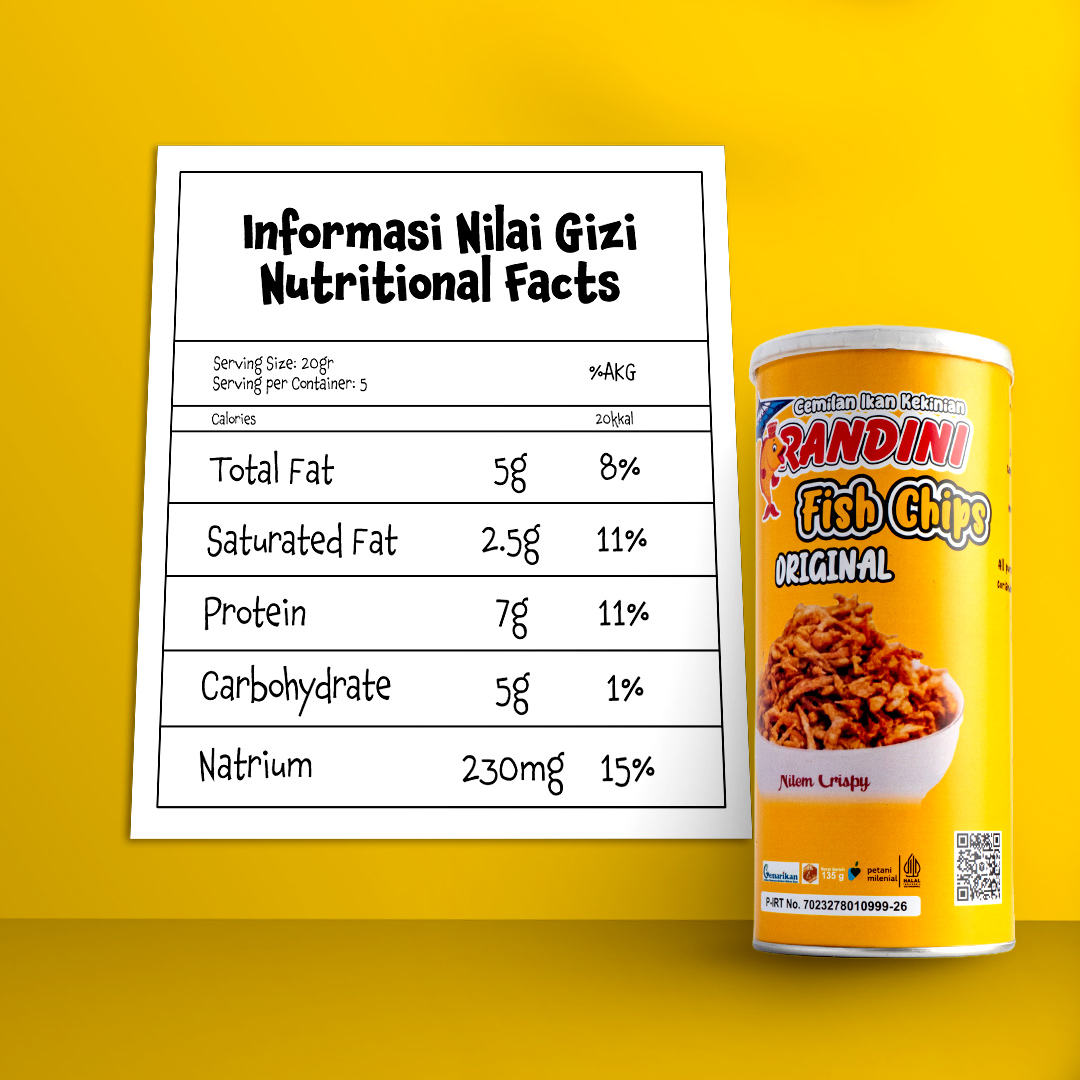 Randini is a freshwater fish snack (made from small Nilem fish) that’s coated in a special flour blend and fried to crispy perfection. It offers a naturally savory taste with an ultra-crunchy texture, perfect for all ages.