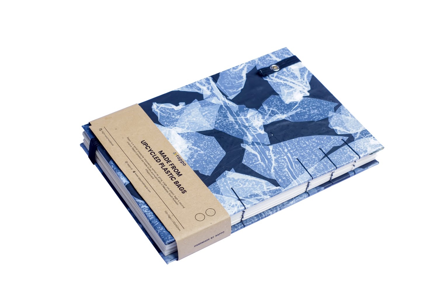 Hardcover notebook made from recycled plastic bag waste/upcycled plastic bag waste 100% Handmade