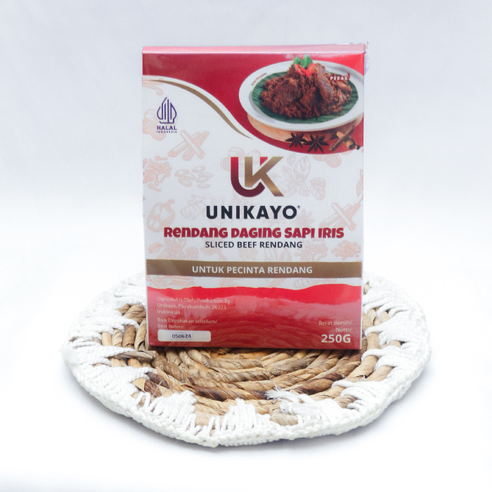 Rendang Daging Sapi Iris Unikayo is made from high-quality local beef sourced from the Modern Slaughterhouse in Kota Payakumbuh and processed with Unikayo's special spices, resulting in an authentic flavor with tender texture.