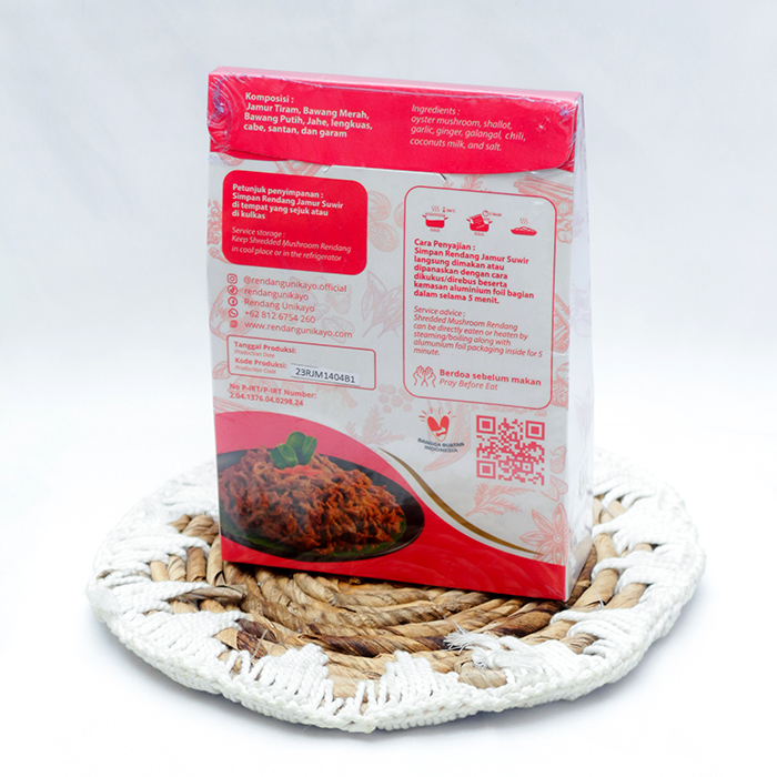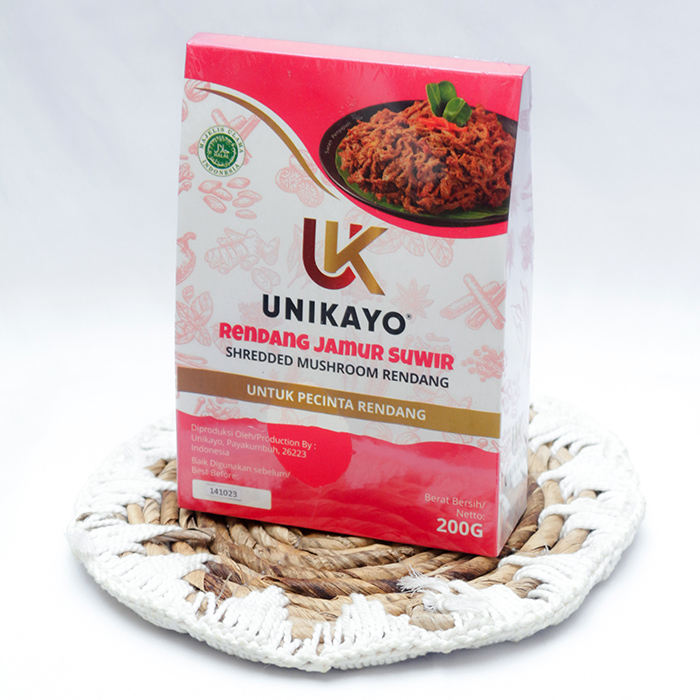 Rendang Jamur Suir is the latest innovation from Unikayo, made from fresh oyster mushrooms supplied by the Payolinyam Women Farmers Group, and processed with Unikayo's special spices, resulting in an authentic flavor with a soft and chewy texture.