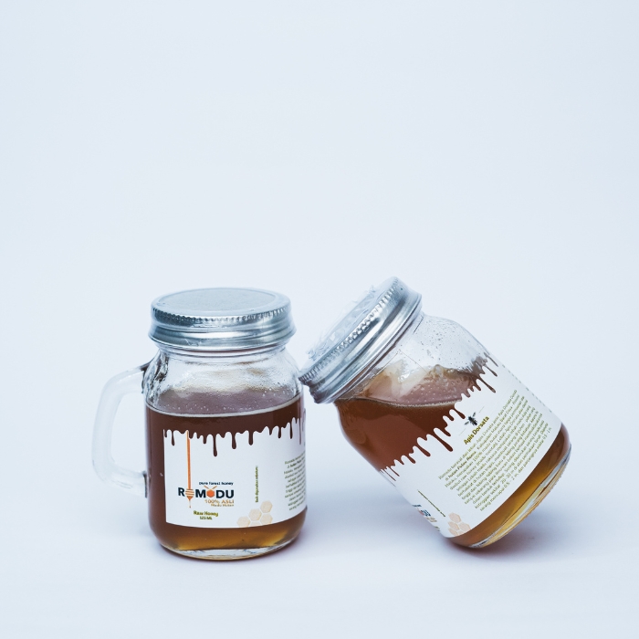 Romadu 125 ml in mini glass jar packaging and packaged without any mixture. Taken directly from the forest of the island of Roma, Southwest Maluku Rgency (MBD), Maluku Province and immediatle packed in safe and easy to carry packaging. The packaging is multifunctional because it dan be used as a glass Pice container. Romadu is 1000% pure forest honey which is guaranteed with permission from the Ambon City Health Office, namely PIRT and Halal certificate