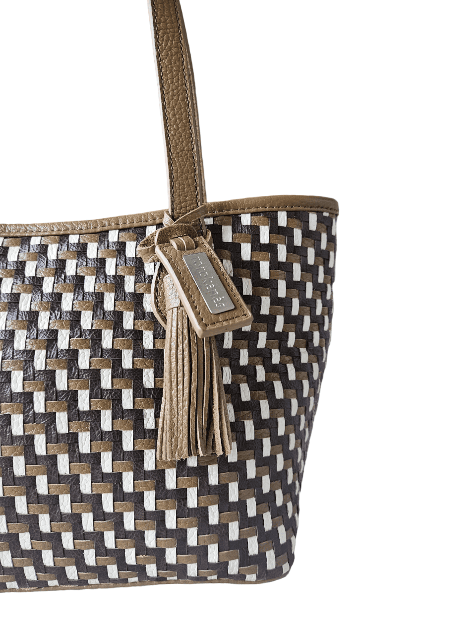 Lumbini bag is made from genuine woven cowhide leather with woven design inspired by ‘gedek’ or javanese traditional woven bamboo wall, with a zipper closure. The interior uses suede fabric, complete with two inner pockets and one zipper pocket. Perfect tote bag for women.