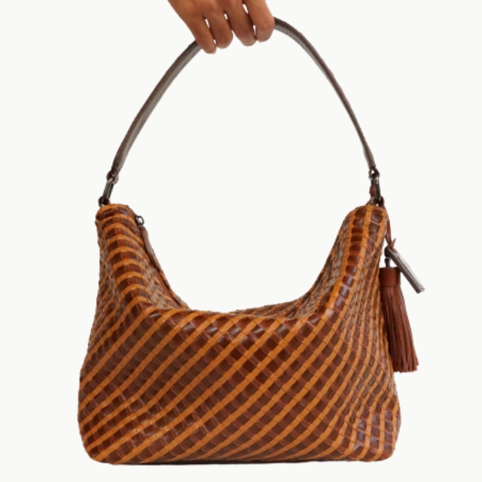 Keong Ayu is made from genuine woven cowhide leather, with a woven vine motif, included in the tote bag type. Complete with an outer zipper, 2 inner pockets and 1 inner pocket with zipper.