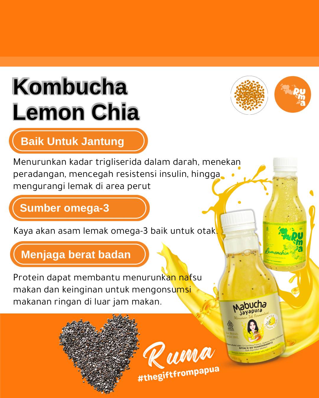 **A Dream Come True** RUMA was born from the dream of Dian Lestari, a holistic wellness expert and mother of three, who founded "Mabucha Jayapura" in 2023—meaning “Mama makes kombucha from Jayapura.” Her mission: empower Papuan women to stay creative and productive. With 70% female customers and community-driven campaigns, RUMA has built a strong support system. Now in 8 cities with nearly 100 distribution points, RUMA enters a new chapter. “RUMA” means home—where love, energy, and stories flow. Our orange Papua-shaped logo reflects our spirit to share the richness of Papua’s culture and nature with the world. **#RefreshingIndonesiaFromPapua**