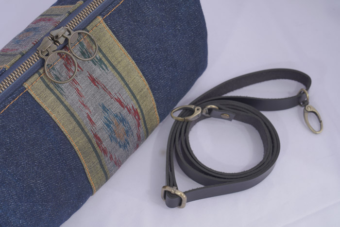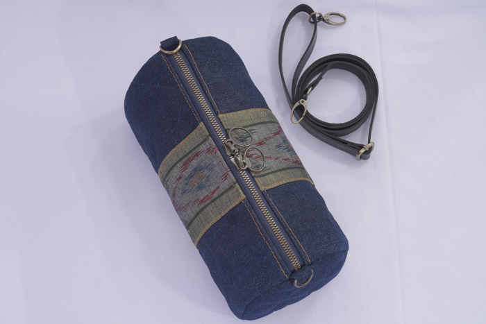 This sling bag is medium sized, the right and left sides are oval, with a full body made from navy blue jeans. Application in the middle of the bag with woven ATBM Sarong Tajung Palembang fabric.