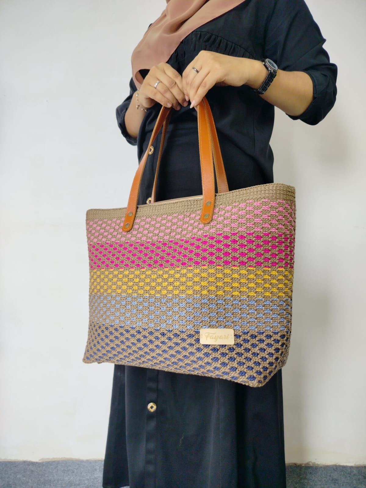"Rumah Rajut Fayari" in Payakumbuh was established on January 1, 2018. It focuses on developing knitting and craft skills, with its main product being knitted bags using the technique of net knitting. Fayari has released 15 patterns and 42 models of bags in various sizes. They combine hand embroidery with knitting yarn instead of embroidery thread, and also incorporate motifs from Tenun Balai Panjang, a traditional woven fabric from Payakumbuh. Fayari empowers women aged 16 to 62 through knitting training programs. Their knitted products are environmentally friendly, with minimal waste. They have plans for export based on offers received over the past 2 years.