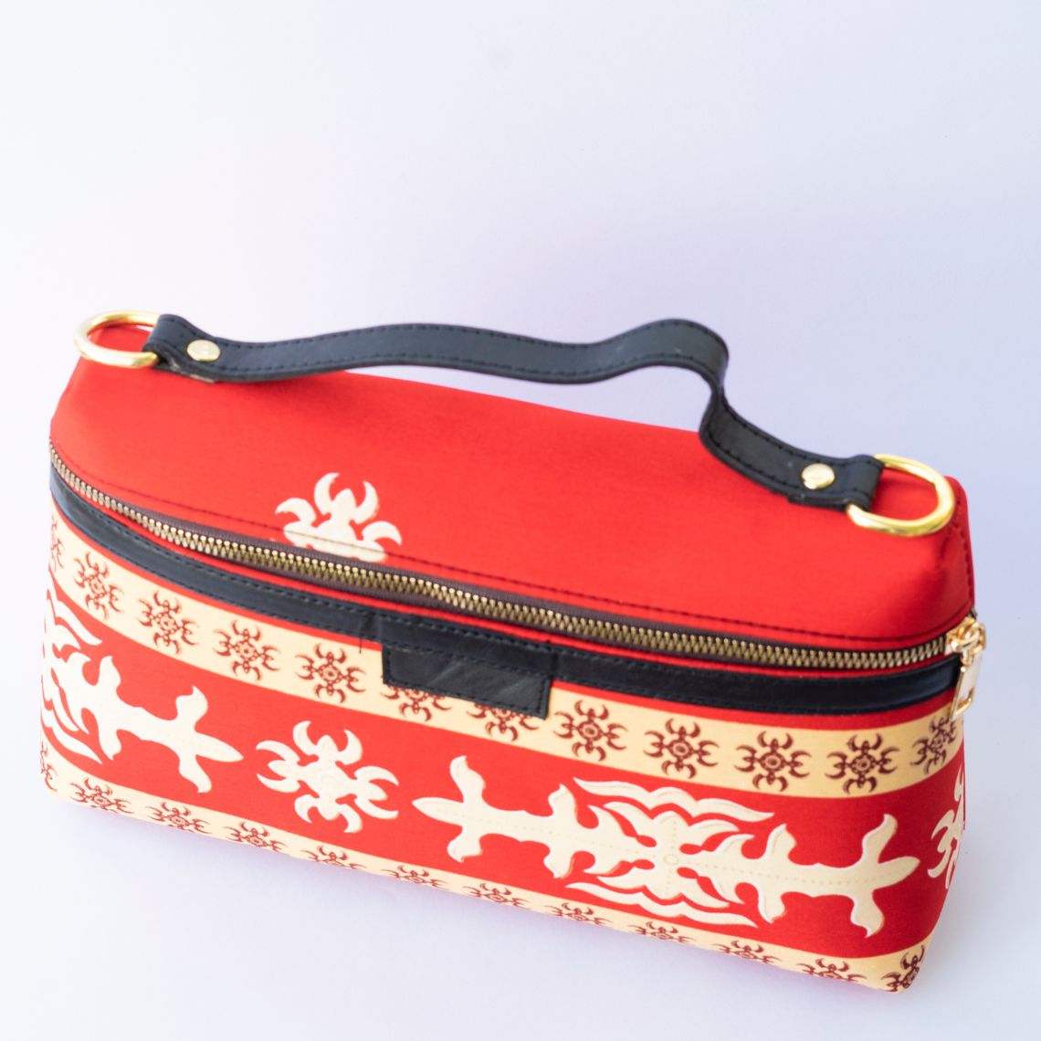 This single handbag is a handcrafted crochet piece beautified with a vintage-themed ATG handle. It is suitable for formal events or parties, enhancing confidence with its classic yet luxurious charm. The crocheted pattern with gradient colors makes this bag unique.