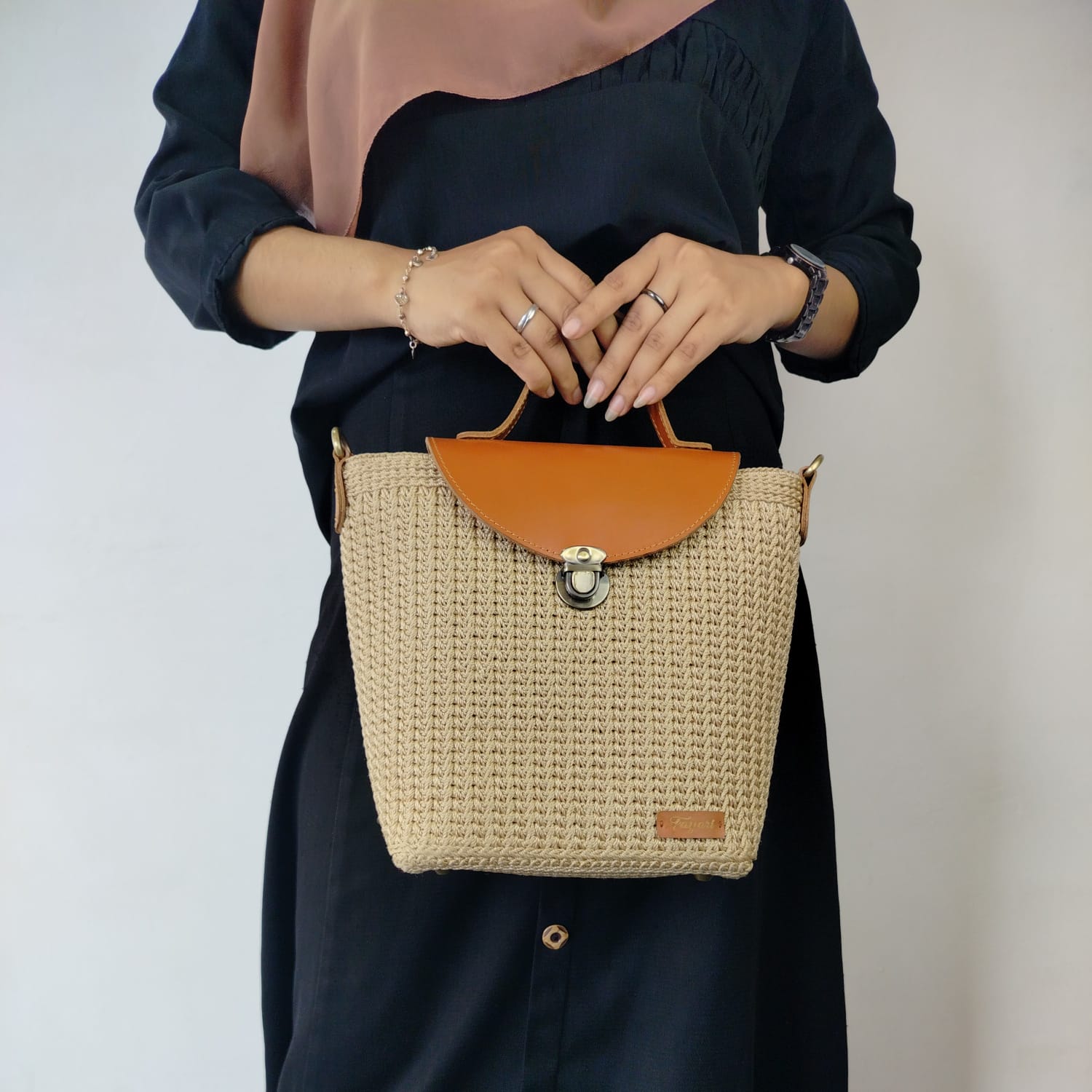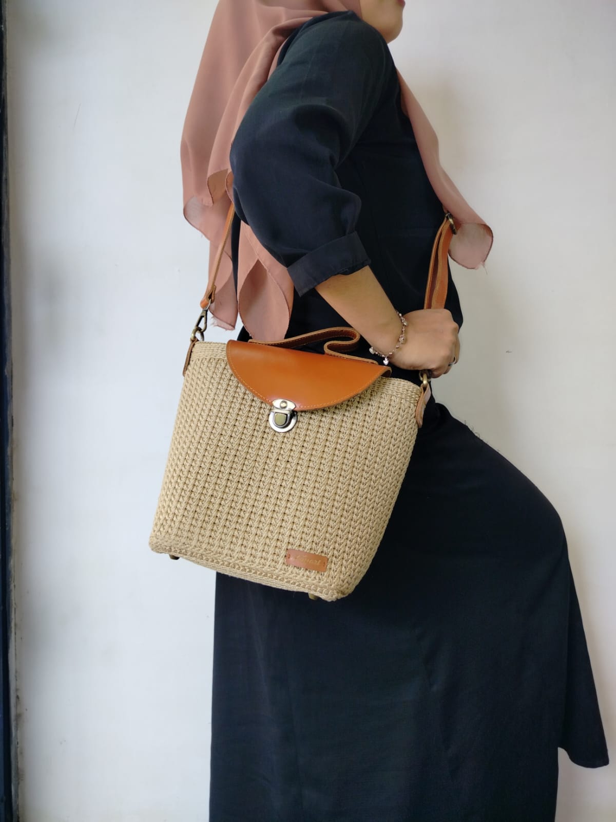 Size: tas berukuran sedang alas 20 dan lebar 12 cm, tinggi tas 22 cm. panjang tali handle 20 cm dan tali panjang 120 cm